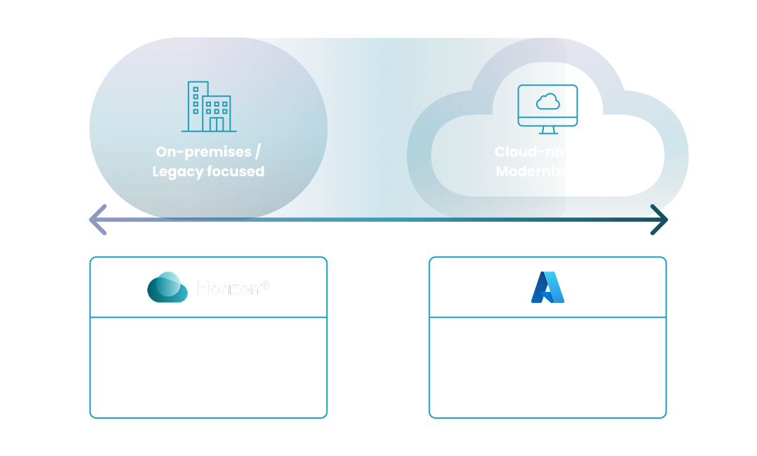 "Azure" refers to Microsoft's entire public cloud platform, which offers hundreds of services, including compute, storage, and networking. "Horizon" is a specific application and desktop virtualization (VDI) product from Omnissa (formerly VMware). The more accurate comparison is between Azure Virtual Desktop (AVD), the VDI service on Azure, and Omnissa Horizon.